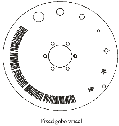 · Static gobo wheel: 6 gobos + animation
