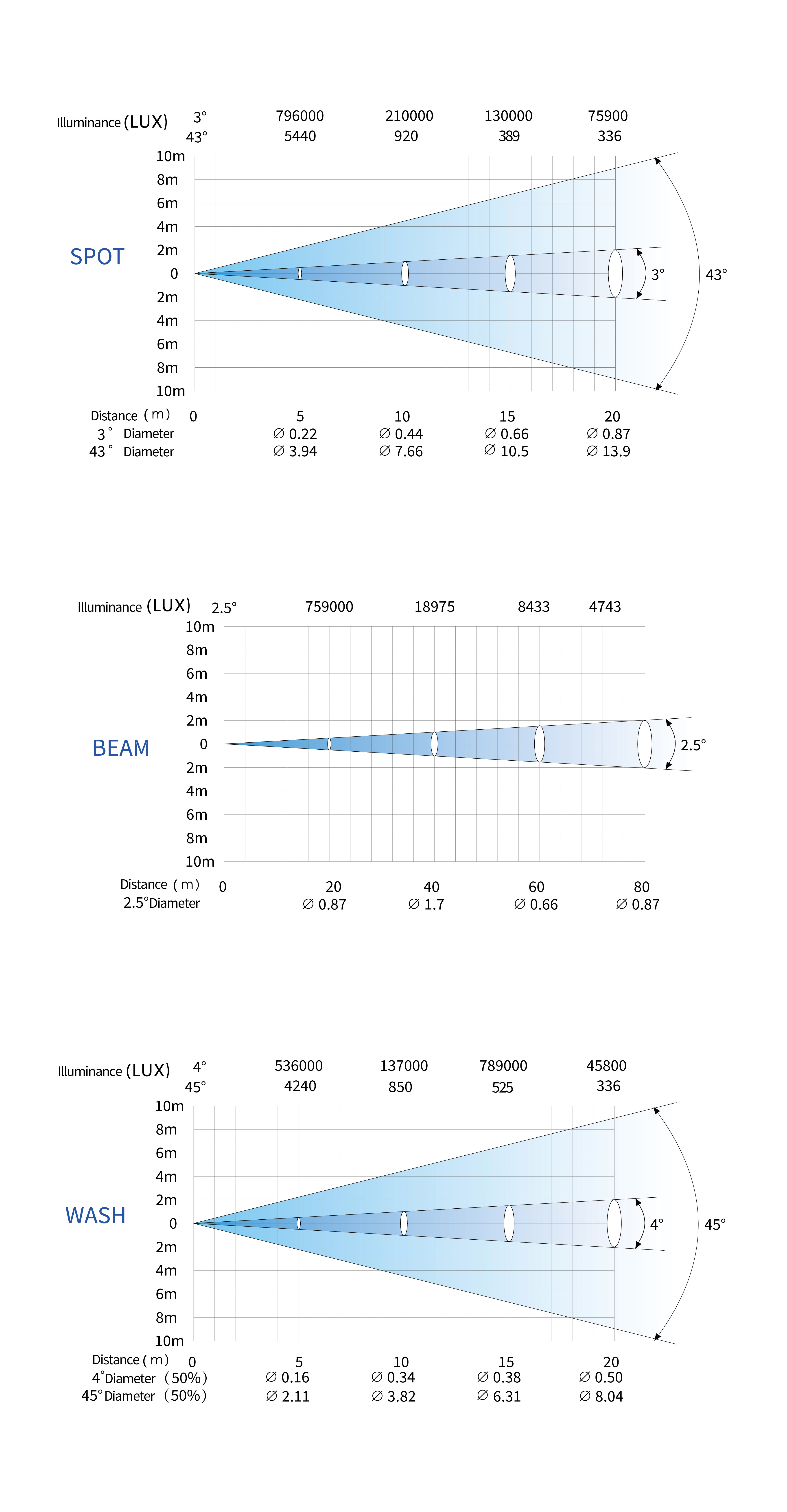 · Zoom: Beam 0°-2.5° Spot 3°-34° Wash 4°-45°