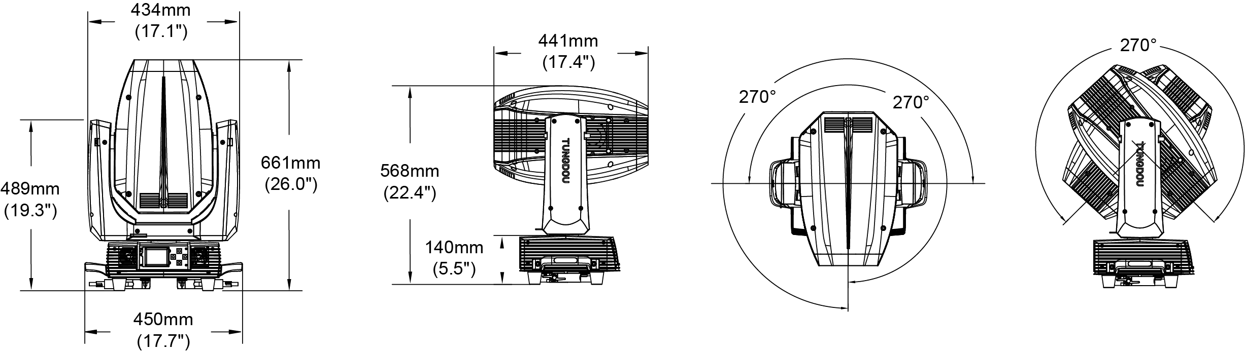 Zoom range: BEAM 0° - 2.5° / SPOT 3° - 43°/ WASH 4° - 45°
