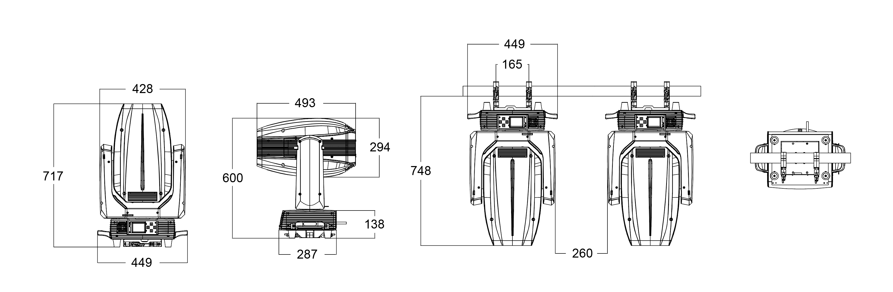 Zoom range: Beam spot 5°~ 44.5°/wash 9°~ 48°
