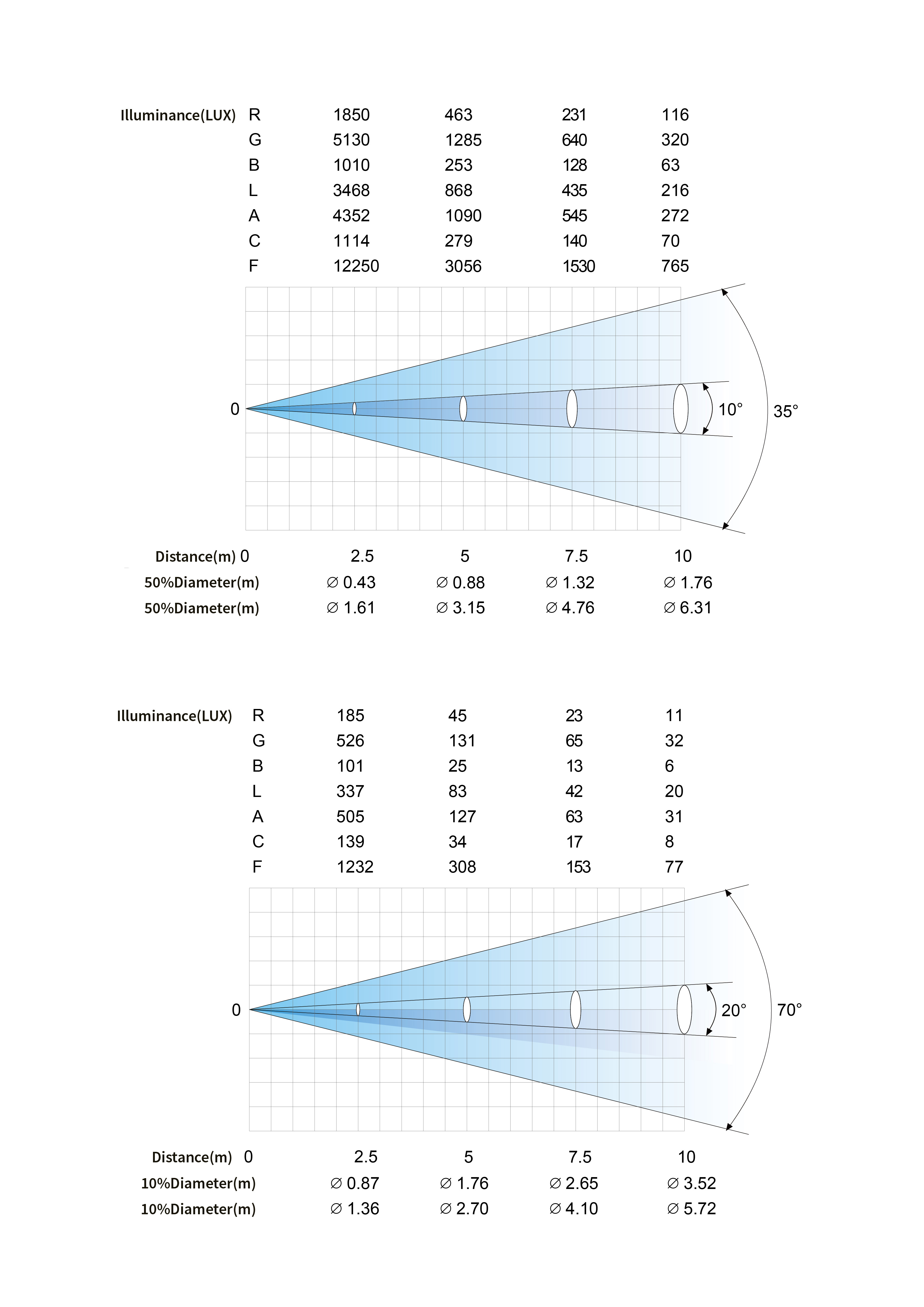 · Angle: 10°-35°(50%), 20°-70°(10%)