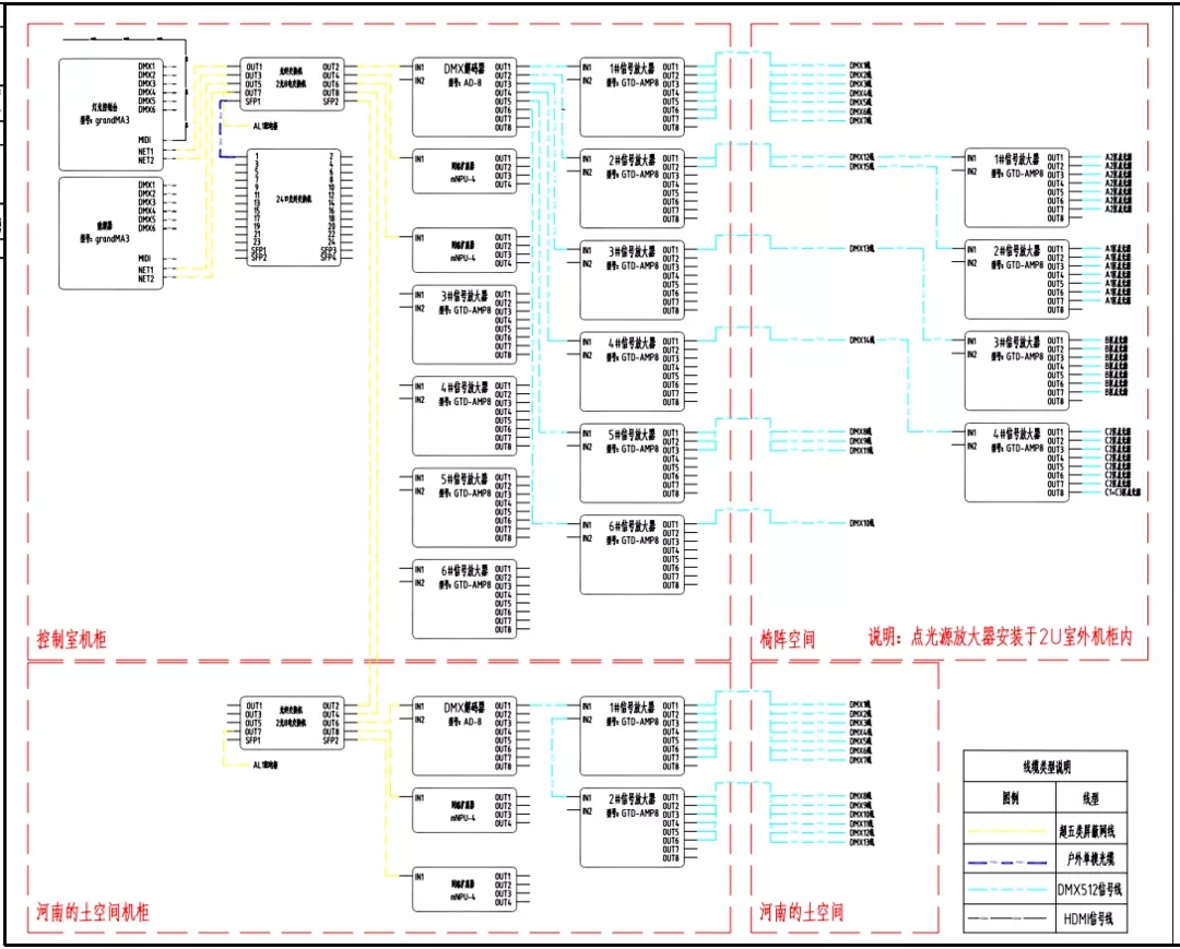 In addition to lighting engineering, the lighting control system in the "Unique Henan" project also needs to integrate theatrical lighting, landscape lighting, building facade lighting, indoor lighting and other functions into one. This combination of professional lighting design and engineering technology is attributed to a set of intelligent digital control system customized and developed by GTD for the project. Through this set of intelligent digital system, multiple teams can simultaneously achieve a high degree of collaboration and intelligence. Regulation. "Sound, light, electricity, painting" integration, all types of professional broadcast consoles, audio and video software and hardware can be highly integrated; a variety of control methods are flexible and convenient, mobile APP can also be easily operated, which can be used for debugging and rehearsal Various project scenarios such as those are also very convenient for the follow-up routine operation of the park; the system can also be used for remote operation to solve on-site problems. The wireless link mode bids farewell to the traditional line construction complexity, cross construction, site damage and pollution and other issues, effectively reducing the overall cost of the project.