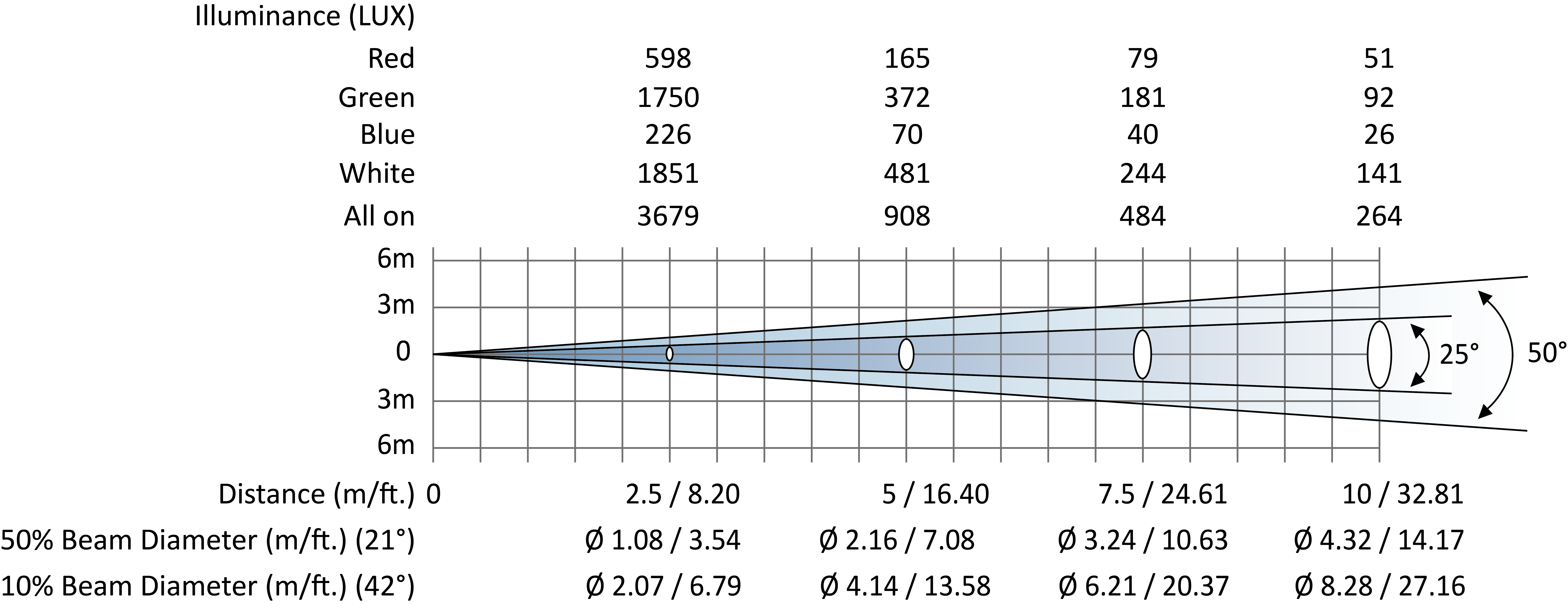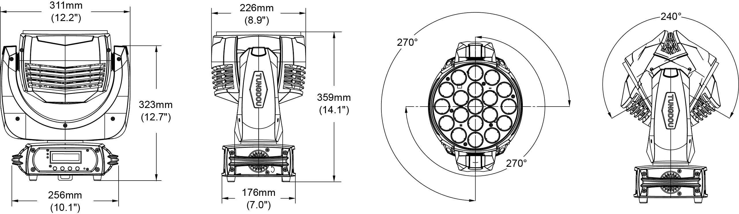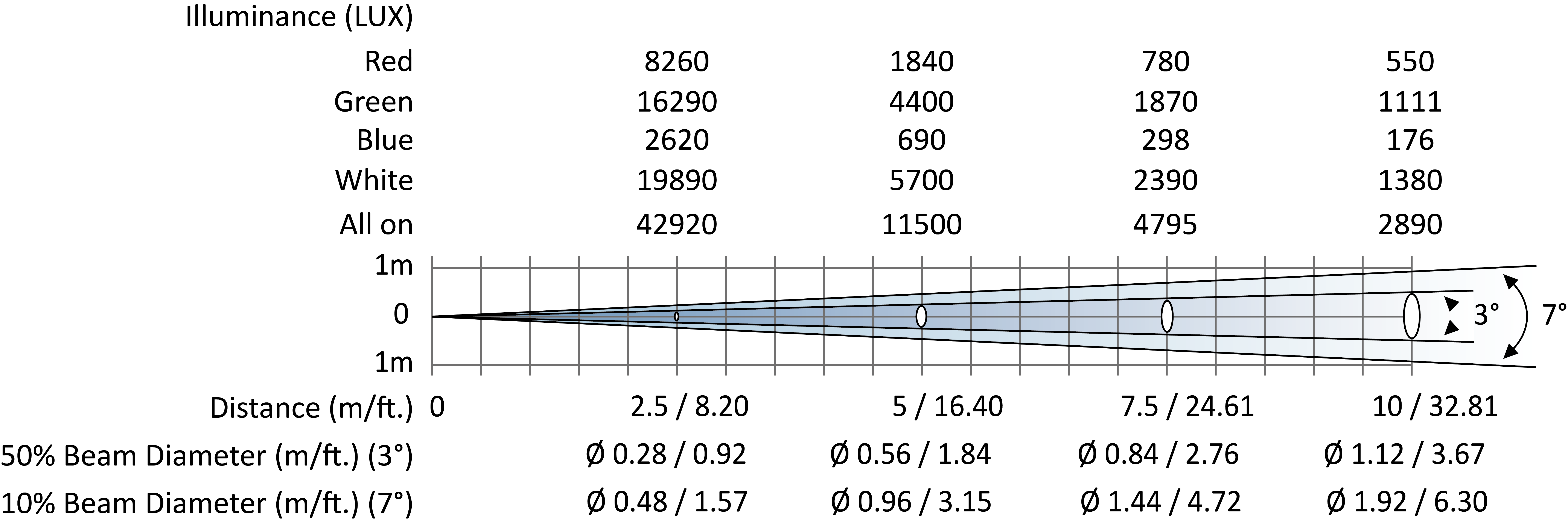 Light source: 30W (RGBW 4-in-1) 19 LEDs (White/Amber LED optional)