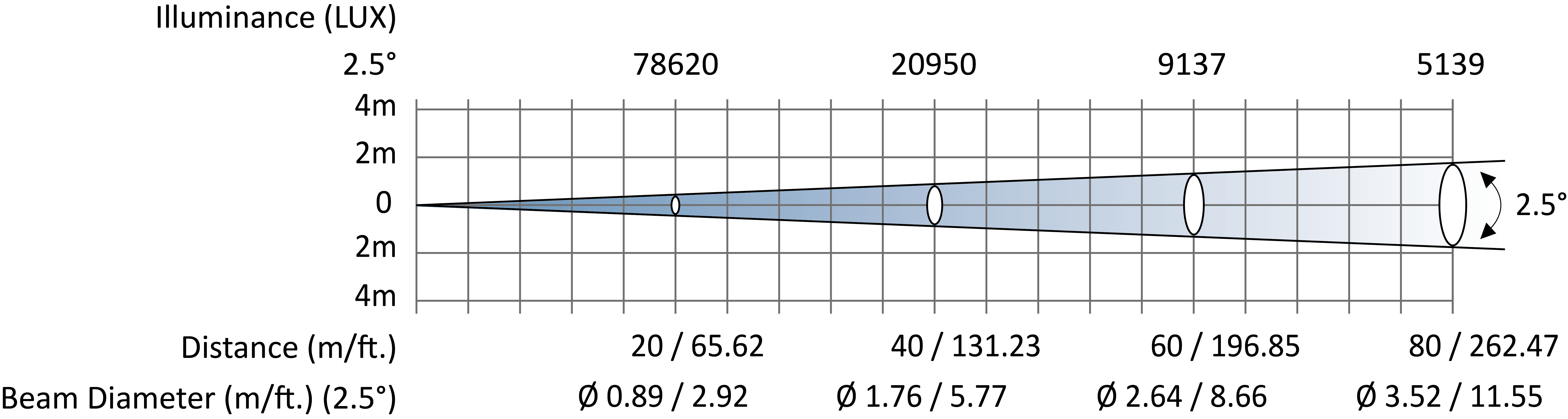 Minimum distance to illuminated surfaces: 15 mtr(49.2 ft.)