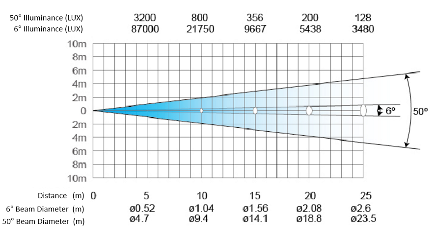Minimum distance to illuminated surfaces: 5 mtr(16.4 ft.)