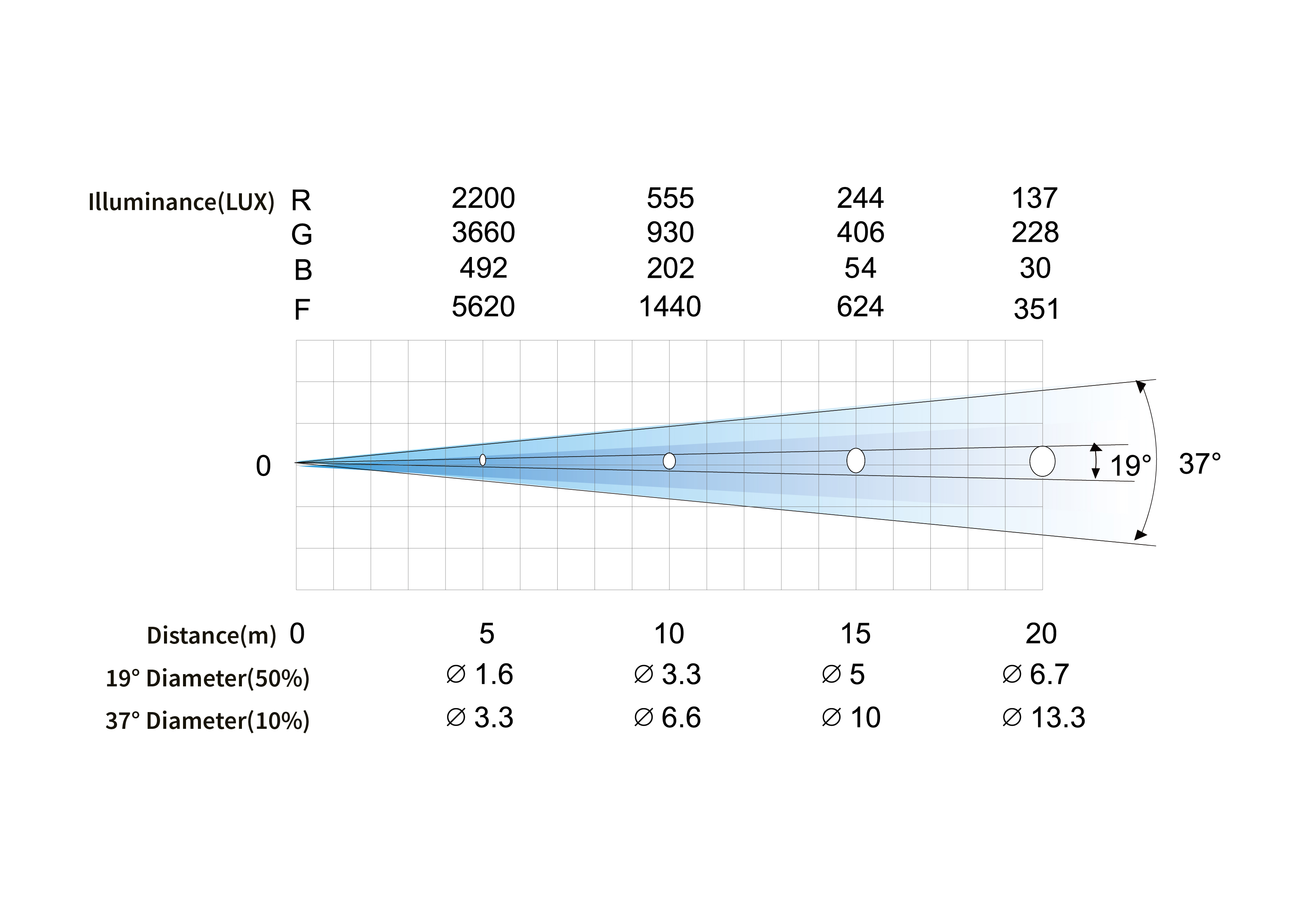 · Minimum distance to illuminated surfaces: 1 mtr(3.3ft.)