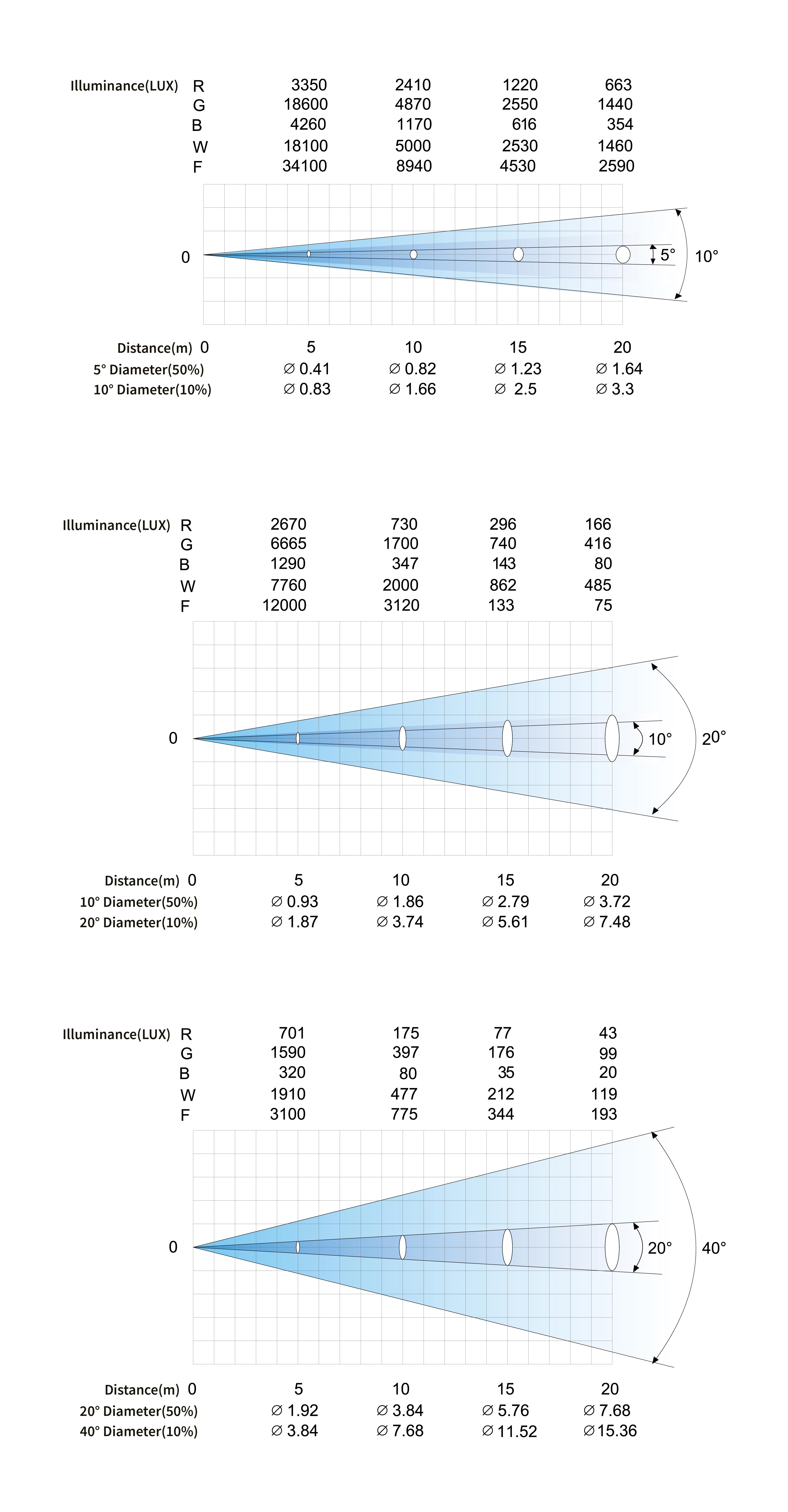 · Angle: 20°; 10°/40° optional