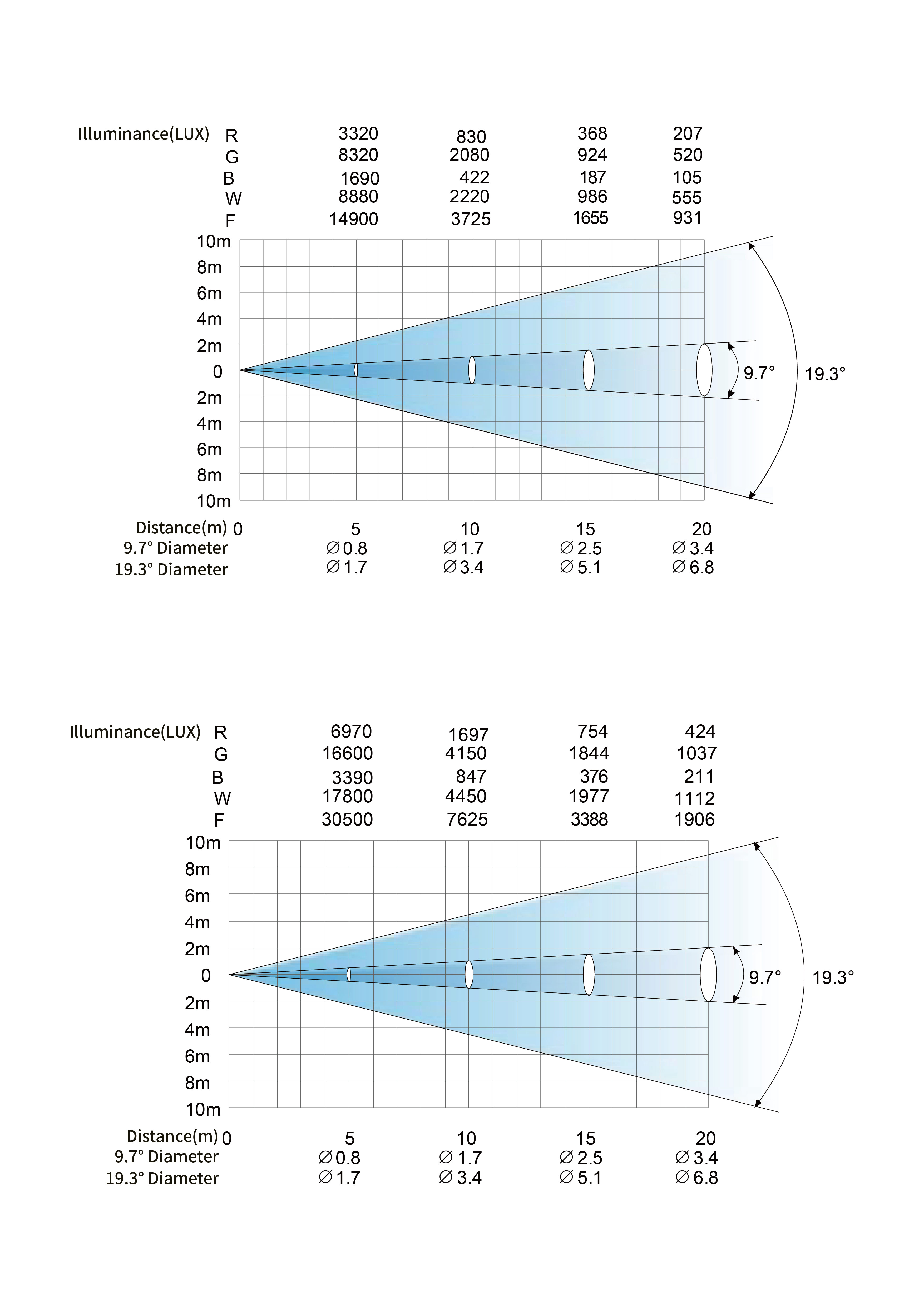 · Minimum distance to illuminated surfaces: 5 mtr(16.4 ft.)