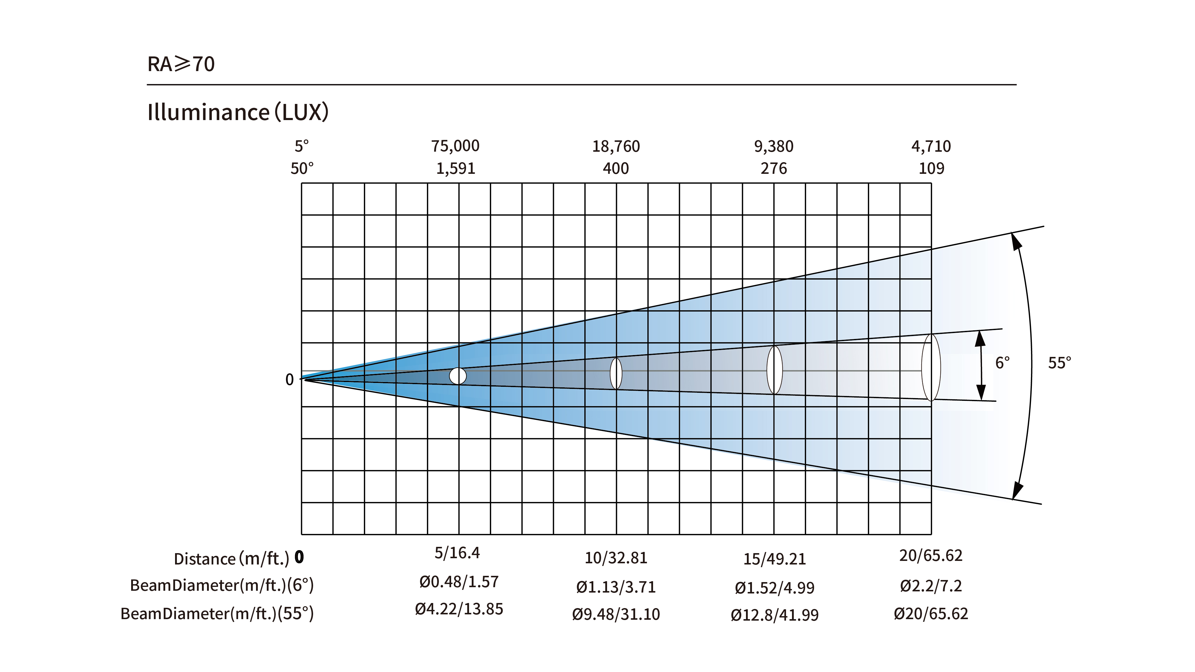 · CRI : Ra≧70, Ra≧90 (optional adding high CRI filter)