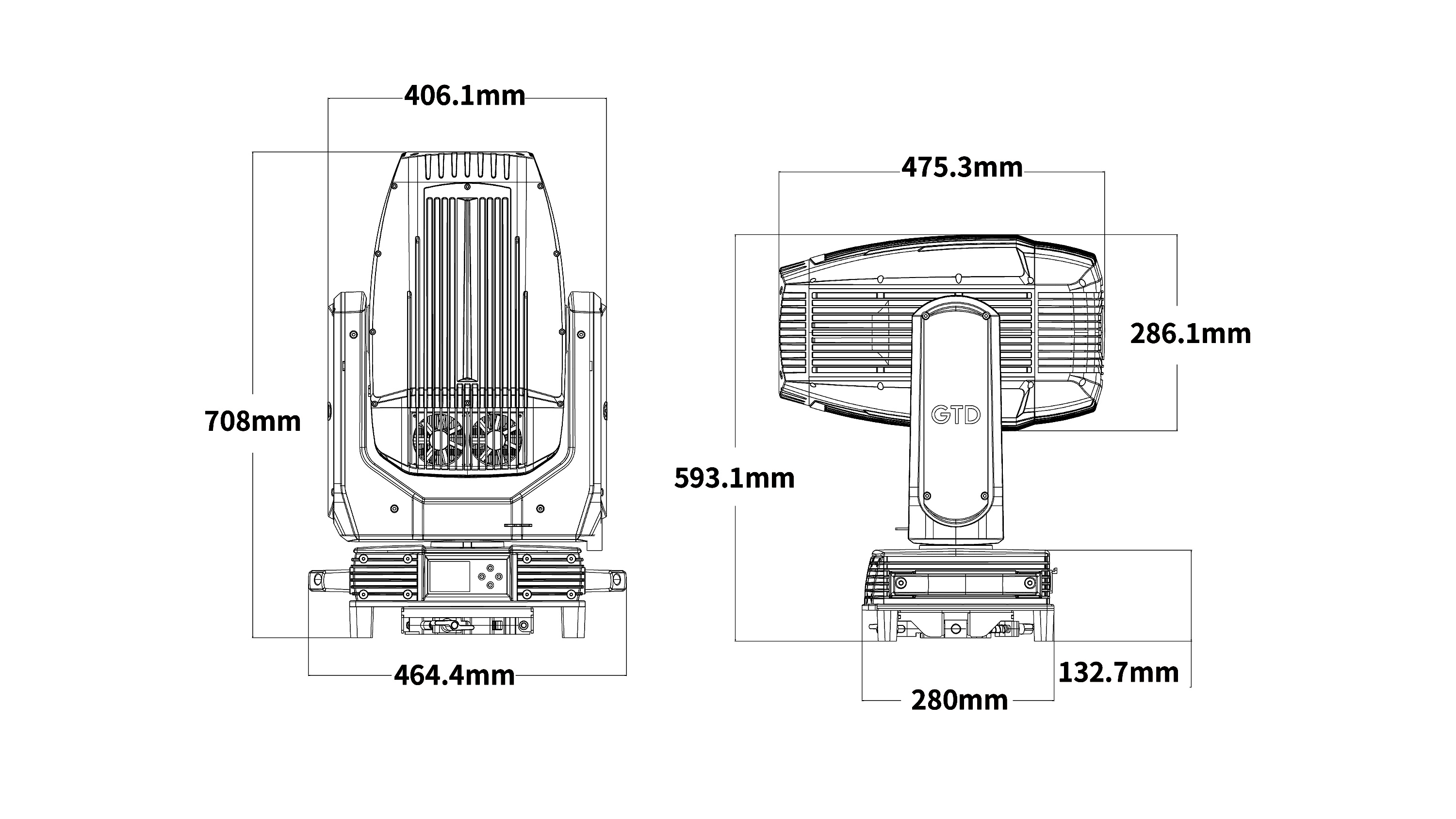 · Cooling: The internal circulation heat dissipation+copper tube heat dissipation system and temperature intelligent monitoring technology are used to automatically adjust the heat dissipation system to effectively control the temperature of the lamp.
