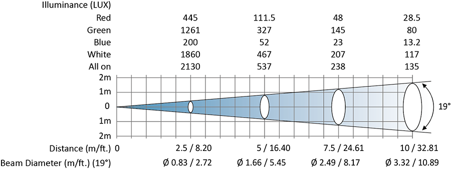 DMX data input/output: 2 x 3.28 ft.(1 m) cable with 5-pin Neutrik IP65 XLR plugs (in/out)