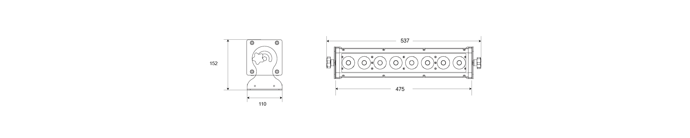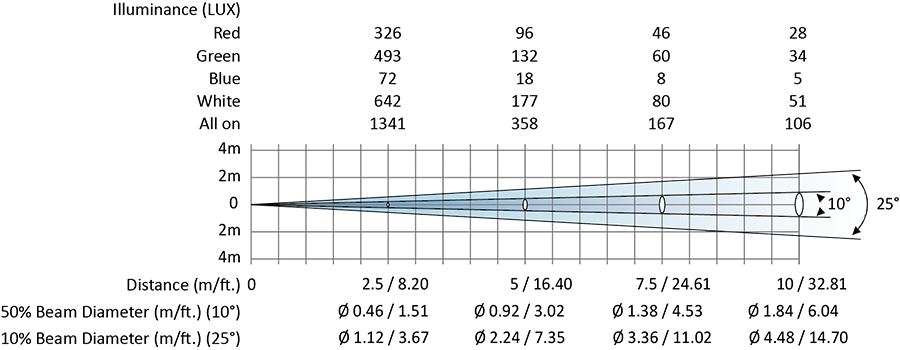 DMX data input/output: 2 x 3.28 ft.(1 m) cable with 5-pin Neutrik IP65 XLR plugs (in/out)