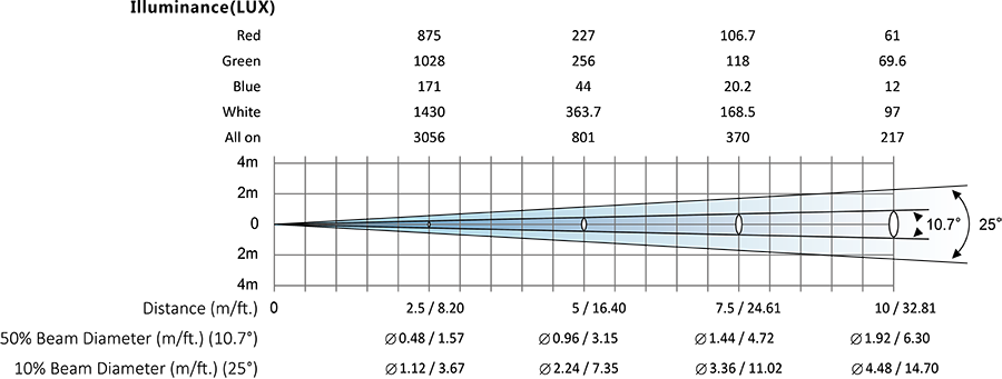 Minimum distance to illuminated surfaces: 1 mtr(3.3 ft.)
