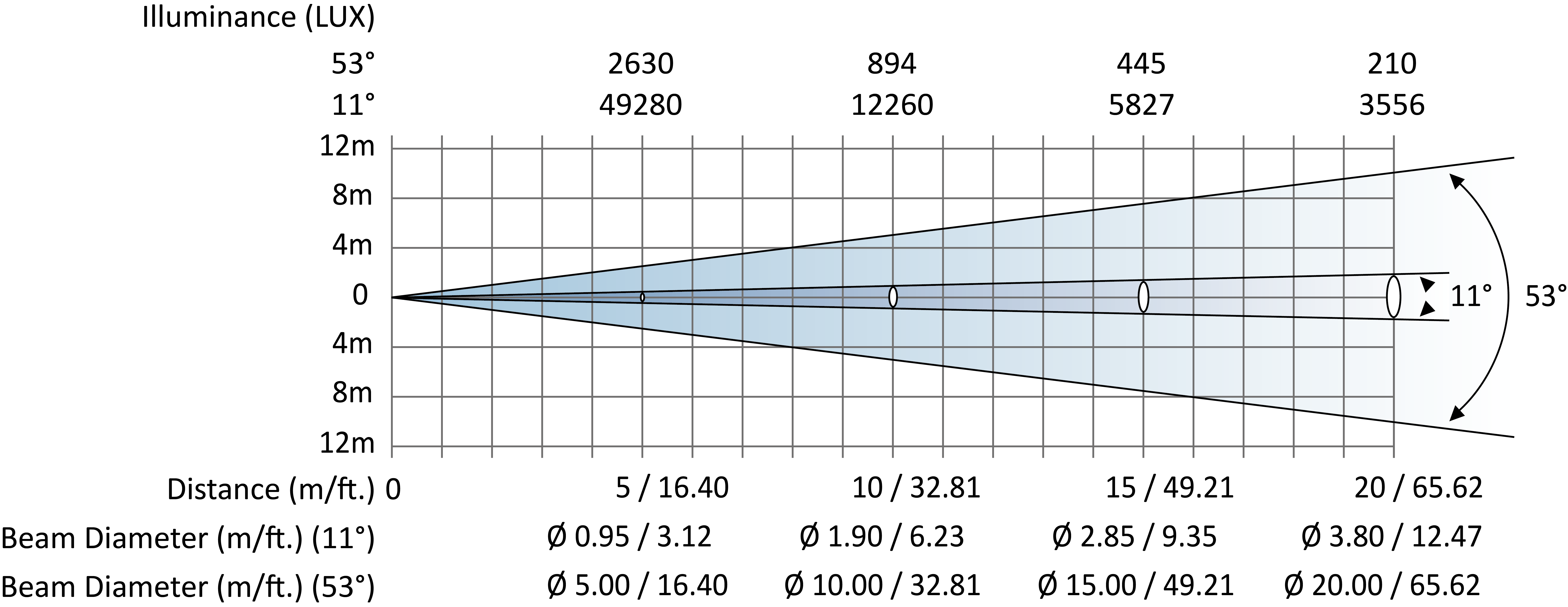Beam angle: Zoom range 11˚ - 53˚
