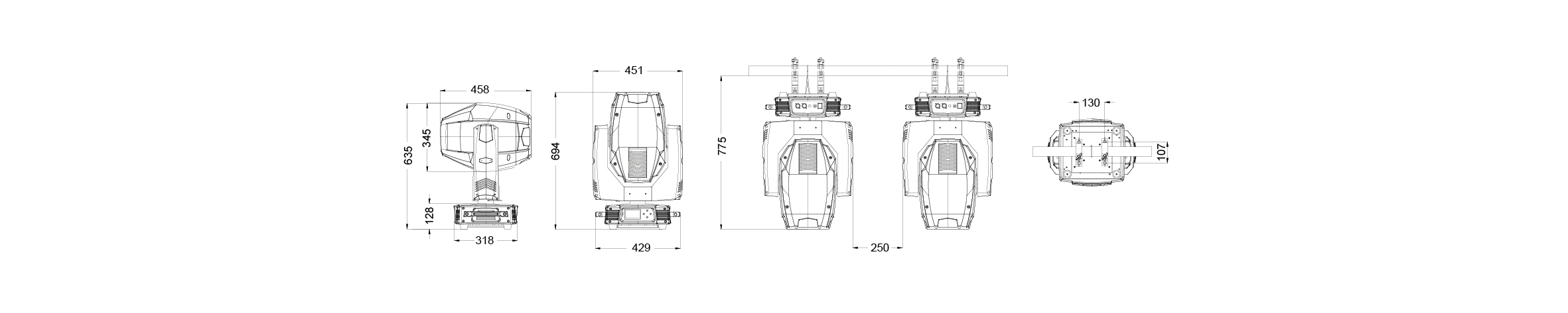 16-bit control: Dimmer, focus, prism zoom, pan/tilt, gobo indexing & rotation, rotating gobo wheel positioning