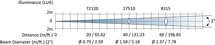 Beam angle: Zoom range 0° - 2°