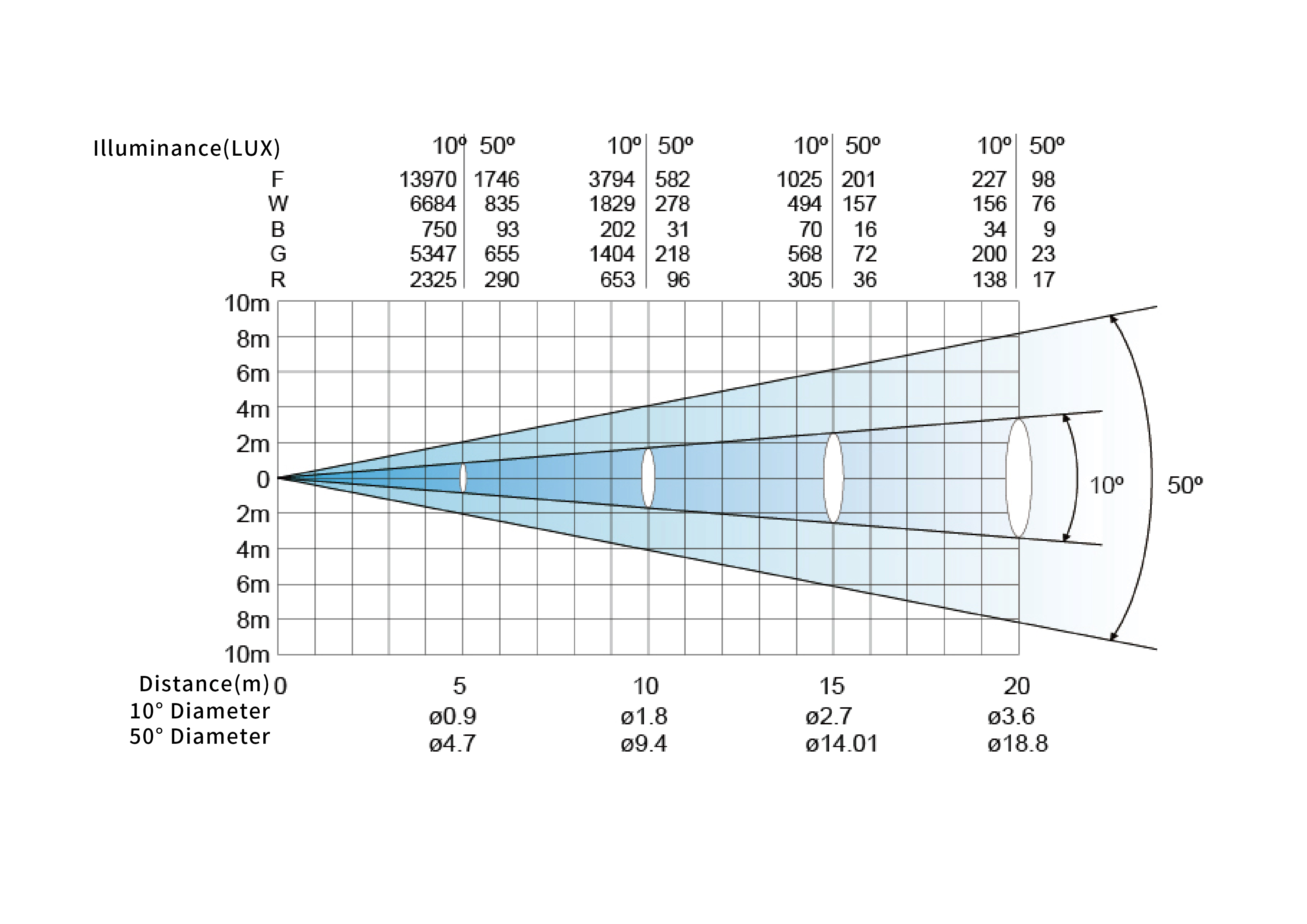 · Minimum distance to illuminated surfaces: 1 mtr(3.3ft.)