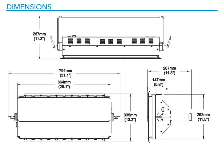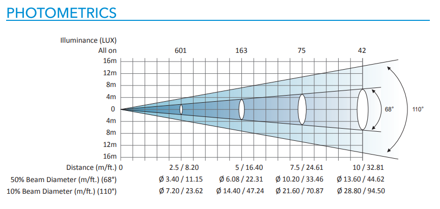 Minimum distance to illuminated surfaces: 1 mtr(3.3 ft.)